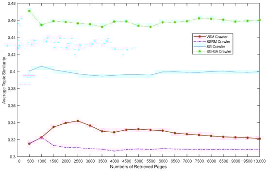 The performance of four focused crawlers is compared by using three indicators, including RN indicator, HR indicator, and AS indicator in the experiment. First, the experiment results indicate that the SG-GA Crawler can obtain topic-relevant web pages with three higher indicators compared with three focused crawlers based on VSM, SSRM, and SG, respectively. Second, the experiment results indicate that the SG Crawler and SG-GA Crawler can extract more accurate terms to represent web pages based on the Semantic Graph compared with the VSM Crawler and SSRM Crawler. Finally, the experiment results indicate that the SG-GA Crawler can obtain better weighting factors to predict more accurate priorities of unvisited hyperlinks based on the Genetic Algorithm compared with the SG Crawler. The experiment results indicate that the SG-GA method can further improve the topic-crawling performance.