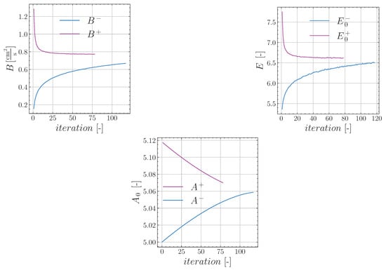 The process of convergence of each parameter coefficient is clearly visible in Figure 7. Different initial values are chosen to verify convergence at the values.