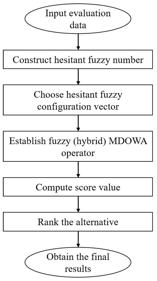 Step 3: Compute the comprehensive assessment value of by applying the hesitant fuzzy MDOWA operator or hesitant fuzzy hybrid MDOWA operator.
