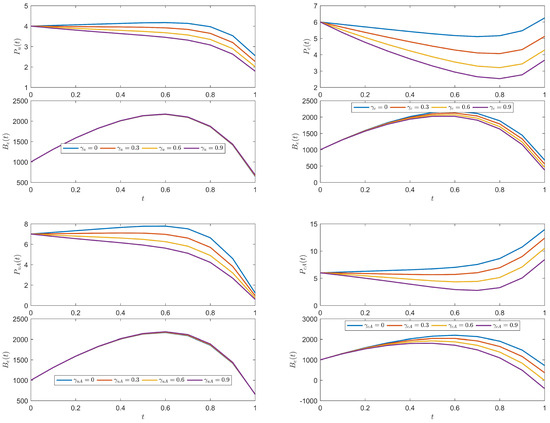 Now, the solutions to the contaminated healthcare worker number with initial value () with different values of the parameter are shown in Figure 7.