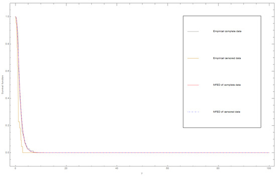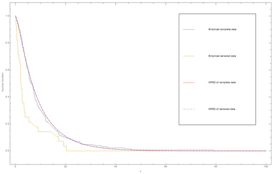 Figure 2 shows the plot of the empirical and fitted survival functions for the complete and censored dataset I using the MLE method.