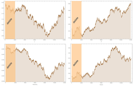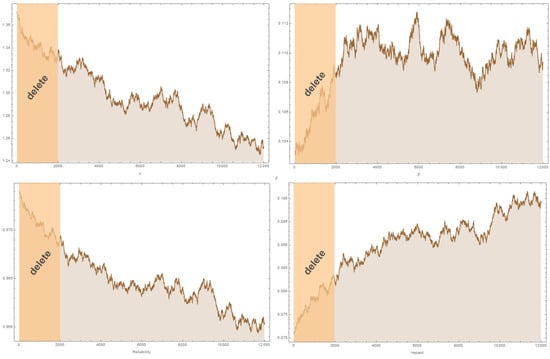 To be more clear about the Bayesian results in Table 5 obtained using the Metropolis–Hastings algorithm within Gibbs sampling, we have added Figure 6, which shows plots of the 10,000 simulated variants for parameters of dataset II after we discarded the first 2000 simulated variants.
