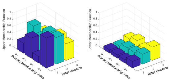 - Here, represents the membership degree of in the threshold set w for a specific weight . represents the weight of in the CT2FSS.