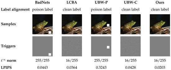- Turner, A.; Tsipras, D.; Madry, A. Label-consistent backdoor attacks. arXiv 2019, arXiv:1912.02771. [Google Scholar]