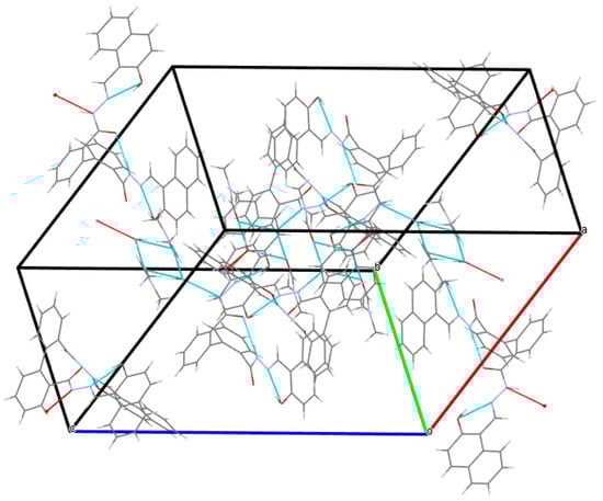 Crystal packing of the compound showing predominant hydrogen bonds as light blue lines [].
