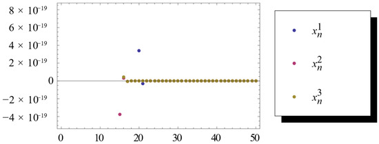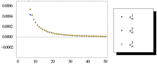 For any , assume , and , then . Assume , , and . From Theorem 3, they satisfy these conditions. is generated by (6). So we find that strongly converges to 0.