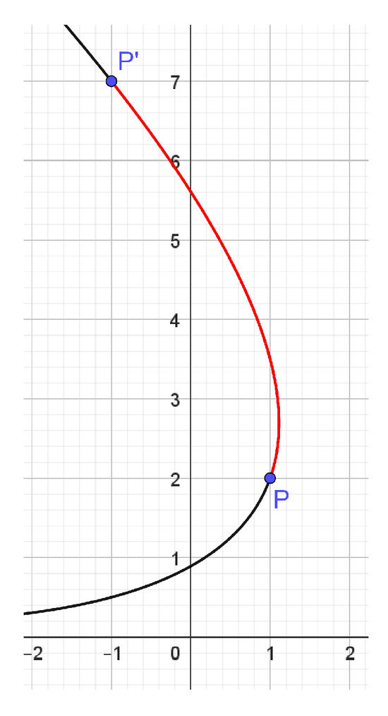 for . It is easy to see that and are on the parabola as they move in a parabolic rotational motion with angle . For instance, let us consider the point on the parabola and rotate it parabolically for the parabolic angle . Then, for , we get