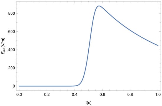 Applying the time dependence of the thermal temperature, we can use Equation (60) to formulate the electric field strength appearing in the emitted wave: