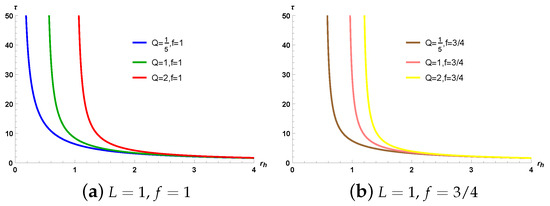Finally, we investigate the topological classes of electrically charged black holes in three dimensions. Note that the generalized free energy is given in the previous section in Equations (12) and (13). Following the same steps, we get the on-shell solution curve in the plane, which satisfies