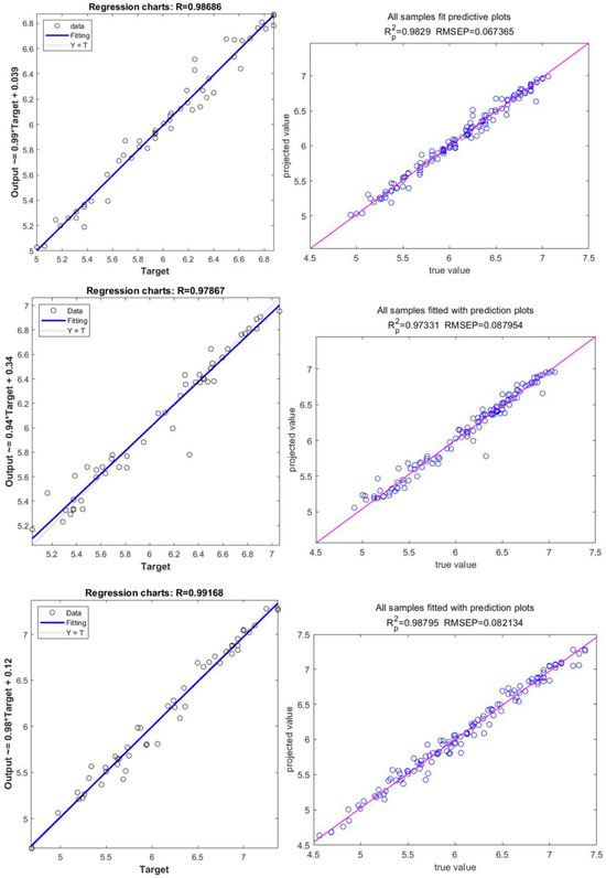 y-axis represents the predicted values. During the optimization process, the horizontal and vertical values of the particles are concentrated on both sides of the linear function, indicating that the particles are more evenly distributed within the search space, which aids in finding the global optimal solution. The bus-shaped fitting graph effectively demonstrates the goodness of fit of the model, and, during the optimization process, the coefficient of determination R