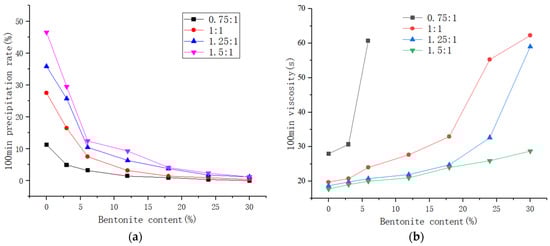 100 min water precipitation rate and viscosity of slurry. (a) Water precipitation rate of slurry in 100 min; (b) slurry viscosity at 100 min.