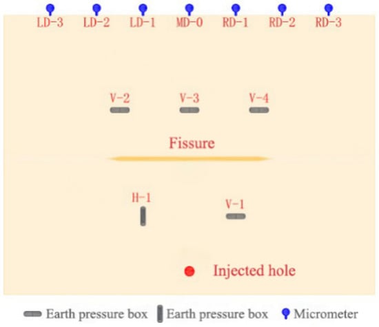 The arrangement of data acquisition equipment in soft and hard uneven strata, as well as in weak fissure strata, is depicted in Figure 15 and Figure 16. While the positioning of the micrometer remains consistent, the earth pressure box employs different embedding schemes within the soil.
