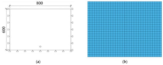 Using the established plane strain model, a model measuring 20 m × 10 m was developed. The parameters selected include a formation density of 1.5 g/cm3, a cohesion of 50 kPa, a soil modulus of 50 MPa, and grouting pressures of 200 kPa, 400 kPa, and 800 kPa. Additionally, the densities of 1 g/cm3, 1.5 g/cm3, and 2 g/cm3 were computed, yielding the various slurry properties presented in Table 10.