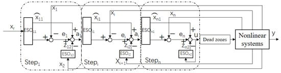 An appropriate solution to this problem is to use an extended state observer (ESO), which provides a new method for estimating uncertainties in nonlinear systems [20,21,22]. The ESO treats all unmodeled dynamics, external disturbances, and parametric uncertainties as total uncertainty and uses an extended state to denote it. In [23], the linear extended state observer (LESO) was first proposed, which simplified the structure of the ESO, facilitating performance analysis and parameter tuning. Based on LESO, refs. [24,25] analyzed stability and adaptability in the time and frequency domains, respectively. Subsequently, ref. [26] studied a high-gain extended state observer and provided rigorous proof of convergence. Ref. [27] combined an extended state observer (ESO) with fractional calculus to study the finite-time stabilization problem. To this point, control schemes based on ESO have been theoretically proven to be effective in various systems, such as dead zone systems [28], systems with time delays [29], and strict feedback systems [30]. However, conventional extended observers are constructed using nonlinear piecewise functions, which result in a large number of tuning parameters and complex stability analysis. Improving the structure of the extended observer to reduce the number of tuning parameters and simplify stability analysis is a feasible direction for the development of extended observers.