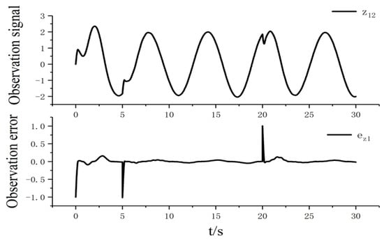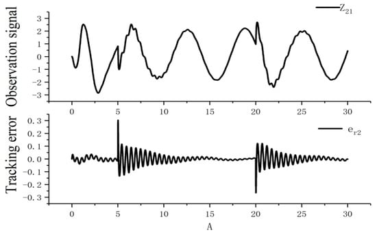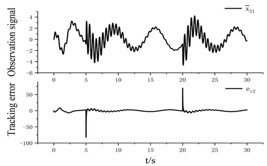 As shown in Figure 3, Figure 4, Figure 5, Figure 6, Figure 7 and Figure 8, the system exhibited good robustness under external disturbances, and the system signal tracking error and observation error quickly converged to a small area. When interference is eliminated, the system can quickly return to a stable state, maintaining a good tracking effect with few observational errors. Based on the above analysis, the adaptive DIC robust control method has strong robustness and is good at signal tracking and anti-disturbance.