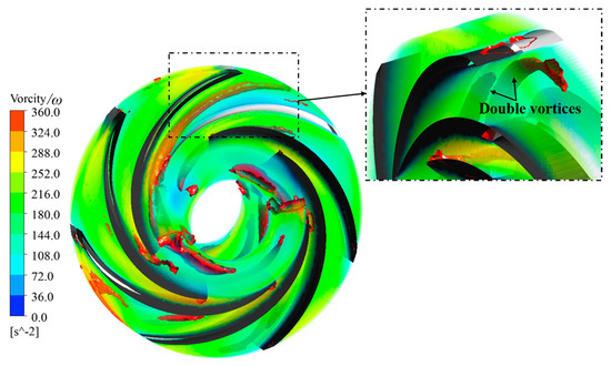 Three-dimensional morphology of the vortices in the impeller under Scheme II.