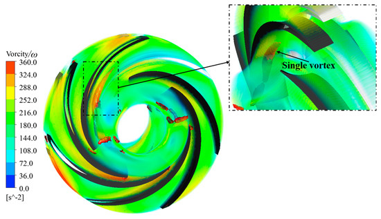 Three-dimensional morphology of the vortex in the impeller under Scheme I.