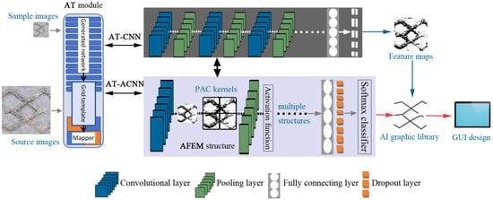In this study, we introduce a novel adaptive image feature extraction and recognition method based on asymmetric adaptive neural network (AACNN) structures to resolve the content-agnostic convolution and image size adaptability issues with traditional methods. This method includes asymmetric dual network structures of an adaptive image feature extraction network (AT-CNN) and an adaptive image recognition network (AT-ACNN). It constructs the interaction between asymmetric dual network structures to achieve better image feature extraction accuracy and efficiency for irregular images in this method. To verify its superiority, we analyzed its working method in Section 2. With the help of data expansion and transfer learning in Section 3, we tested the effectiveness of this network model in Section 4, including comparative testing experiments and ablation experiments, to verify its superiority. We also explored the ideal parameter balance of these network structures to accommodate real-world applications. Importantly, we applied this research to practical scenarios, such as traditional carving images in Section 5, to demonstrate its effectiveness and application value in image recognition and AI-driven GUI design for traditional carving images. The specific research content and process is shown in Figure 1.