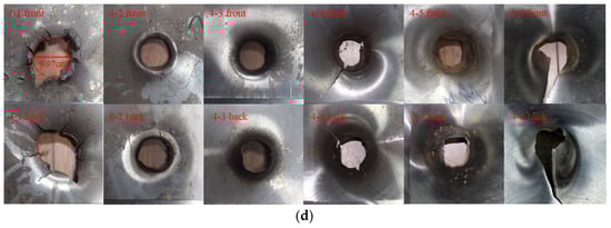 Surface damage morphology of four target combinations: (a) project 1; (b) project 2; (c) project 3; (d) project 4.