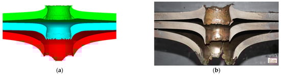 Comparison of experimental and simulation morphology. (a) Simulation; (b) experiment.