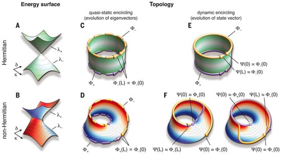 - Zhang, X.-L.; Wang, S.; Hou, B.; Chan, C.T. Dynamically encircling exceptional points: In situ control of encircling loops and the role of the starting point. Phys. Rev. X 2018, 8, 021066. [Google Scholar] [CrossRef]