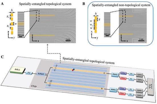 - Wang, M.; Doyle, C.; Bell, B.; Collins, M.J.; Magi, E.; Eggleton, B.J.; Segev, M.; Blanco-Redondo, A. Topologically protected entangled photonic states. Nanophotonics 2019, 8, 1327–1335. [Google Scholar] [CrossRef]