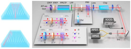 - Wang, Y.; Lu, Y.-H.; Gao, J.; Chang, Y.-J.; Ren, R.-J.; Jiao, Z.-Q.; Zhang, Z.-Y.; Jin, X.-M. Topologically protected polarization quantum entanglement on a photonic chip. Chip 2022, 1, 100003. [Google Scholar] [CrossRef]