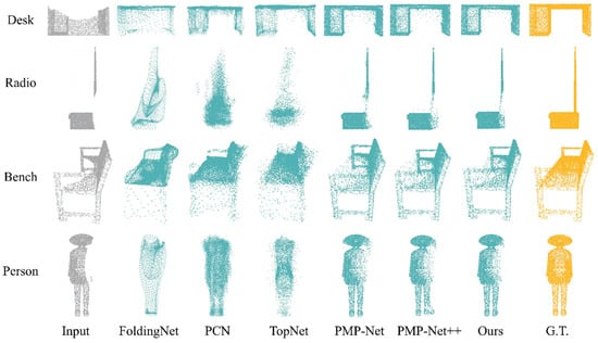 - Tchapmi, L.P.; Kosaraju, V.; Rezatofighi, H.; Reid, I.D.; Savarese, S. TopNet: Structural Point Cloud Decoder. In Proceedings of the 2019 IEEE/CVF Conference on Computer Vision and Pattern Recognition (CVPR), Long Beach, CA, USA, 15–20 June 2019; pp. 383–392. [Google Scholar]