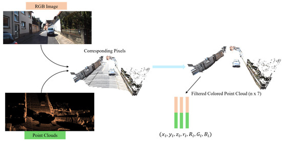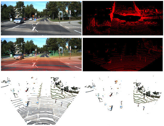 44] have generated projected maps or established connections between 3D points and 2D pixels by means of projecting the 3D points onto the image plane to locate the appropriate pixels. These methods are limited by spatial information in the encoding process; merely a small number of points will complete the matching fusion. In contrast to the aforementioned methods, this method lifts image pixels into a 3D space and chooses to encode the 3D sparse data with a colored texture.