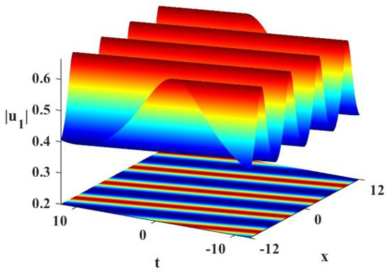 Here, we have set . The dynamics evolution of first-order solution is shown in Figure 1.
