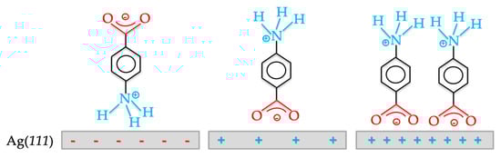 - Schultz, Z.D.; Gewirth, A.A. Potential-Dependent Adsorption and Orientation of a Small Zwitterion: p-Aminobenzoic Acid on Ag(111). Anal. Chem. 2005, 77, 7373–7379. [Google Scholar] [CrossRef] [PubMed]