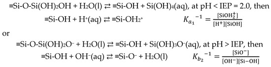 - Brinker, C.J. Hydrolysis and condensation of silicates: Effects on structure. J. Non-Cryst. Solids 1988, 100, 31–50. [Google Scholar] [CrossRef]