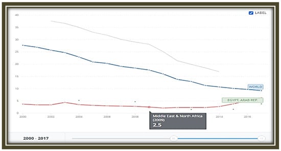 Egypt’s data (2000–2017) are as follows: 5.2, 4.7, 2.2, 1.5, 1.6, and 3.8.