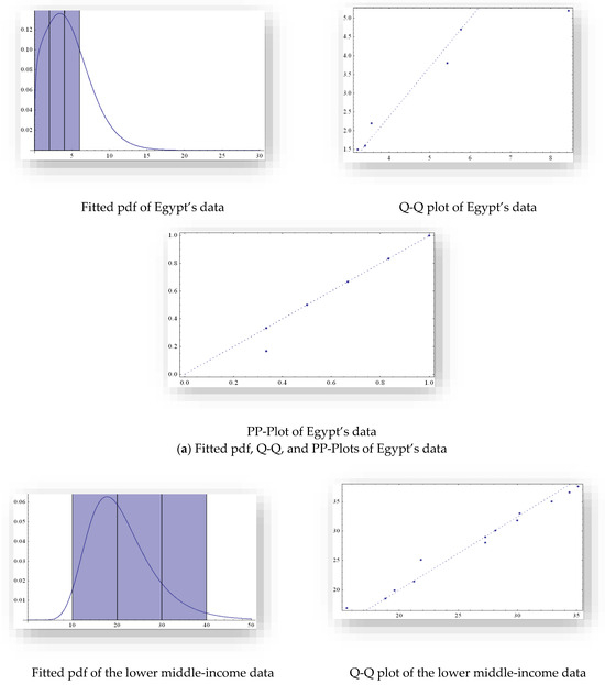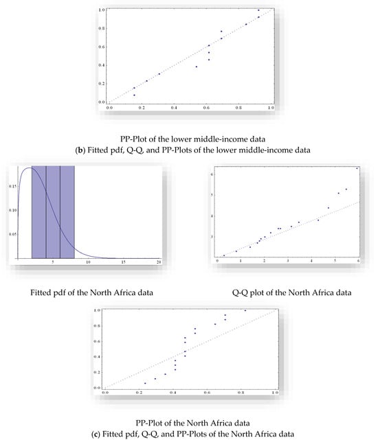 Figure 6 show the fitted pdf, PP-Plot, and Q-Q plot of the EG-Xg distribution for the poverty headcount ratio data.