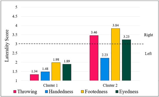 - Peters, M.; Murphy, K. Cluster analysis reveals at least three, and possibly five distinct handedness groups. Neuropsychologia 1992, 30, 373–380. [Google Scholar] [CrossRef] [PubMed]