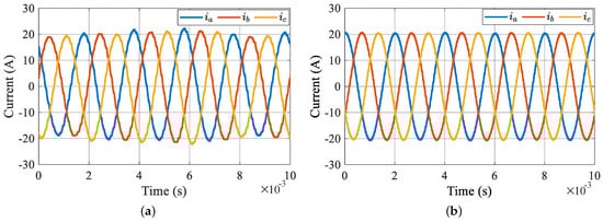 Figure 7. Three-phase current: (a) conventional PI discrete regulator, and (b) discrete-time current regulator.