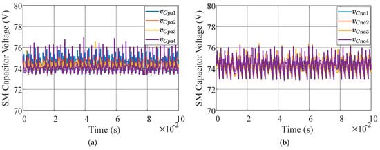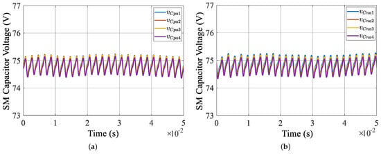 Figure 14. SM capacitor voltage: (a) positive, and (b) negative.