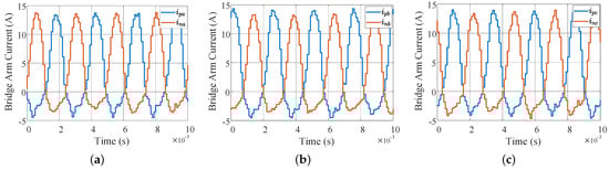Figure 15. The bridge arm current of MMC: (a) phase-a, (b) phase-b, and (c) phase-c.