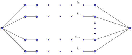 A graph that has r distinct paths connecting two specific vertices is called an -bridge graph. We denote it as , where represent the lengths of each of the r paths. The -bridge is a generalization of theta graphs, see Figure 3. □