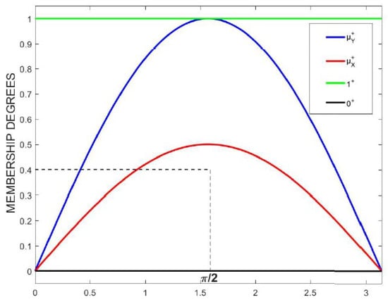 The notion of fuzzy sets was given by Zadeh [] in 1965. The theory of fuzzy sets is a generalization of classical set theory; fuzzy sets grade elements as belonging to a set. A fuzzy set A defined on the universal set U can be denoted as . Here is a function of the form and is called the membership degree of an arbitrary element .