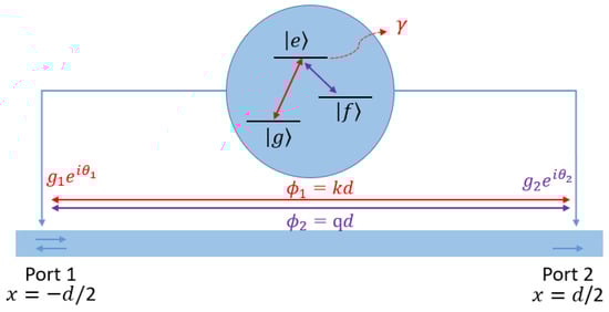 are ground state, intermediate state, and excited state, respectively. The atom–waveguide coupling coefficients are