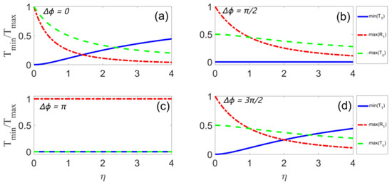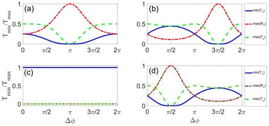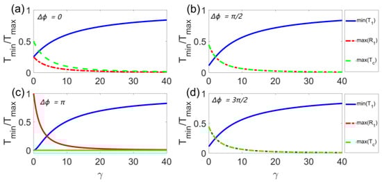 Figure 8a, we find that the minimum of transmission rate decreases with an increase in phase difference. However, when