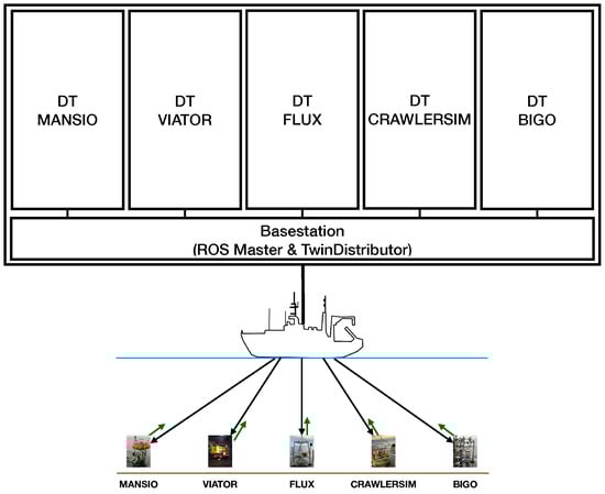 In addition to the digital twin definition proposed by Kritzinger et al. [], we drew upon the digital twin definition provided by Saracco [] and presented a proof of concept of our approach in Barbie et al. []. The development and field testing of the digital twin prototype approach took place within the context of the ARCHES project (Autonomous Robotic Networks to Help Modern Societies). ARCHES was a Helmholtz Future Project featuring a consortium of partners including AWI (Alfred-Wegener-Institute Helmholtz Centre for Polar and Marine Research), DLR (German Aerospace Center), KIT (Karlsruhe Institute of Technology), and GEOMAR (Helmholtz Centre for Ocean Research Kiel).
