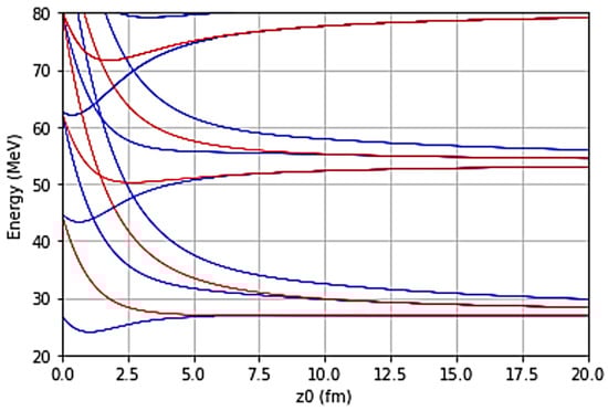 Figure 6 illustrates the approximate variation in the location at which levels in the separate HO potentials overlap and the system changes from two separate HO potentials to solutions of the double-center harmonic oscillator.