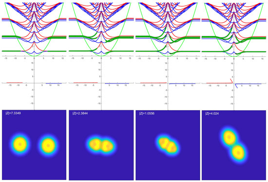 at zero separation. This evolution reflects the change in the wavefunctions such that the final single center wavefunction preserves the number of nodes in the system and introduces an additional node according to the linear combinations: