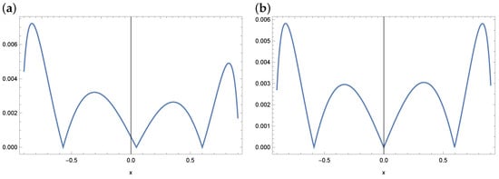 The Taylor series method discussed in this section is similar to the DTM method, which has a wide range of applications, e.g., for solving the ordinary differential equations and their systems, for solving integro-differential equations with delayed argument. Also in this case, use of DTM would be beneficial, but the specificity of the task does not allow it, or more precisely—the initial condition (the value) is missing in the Equation (1). In some special cases the value of or (which makes it difficult but not impossible to use the DTM method) may be known (see e.g., [,]) and then the DTM method can be used. However, in this article, in order to expand the class of Equation (1), we discuss the use of the Taylor series in the next subsection.