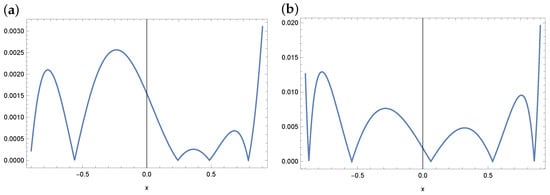 The error curves in both cases are similar in nature, i.e., the highest error values are achieved at the edges of the interval. Taking reduces the size of the error by one order compared to .