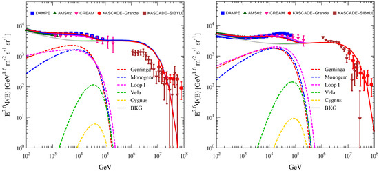 - Liu, W.; Guo, Y.Q.; Yuan, Q. Indication of nearby source signatures of cosmic rays from energy spectra and anisotropies. J. Cosmol. Astropart. Phys. 2019, 2019, 010. [Google Scholar] [CrossRef]