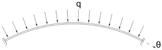 Distributed load on the fixed circular arch.