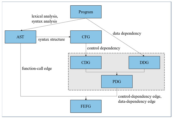 AST is generated based on functions, so we use AST to extract function calls. Then, the PDG is combined to increase control and data dependencies between functions. Finally, a complete low complexity program structure diagram is obtained. The construction process is shown in Algorithm 5.